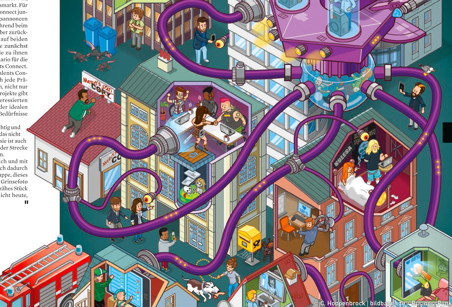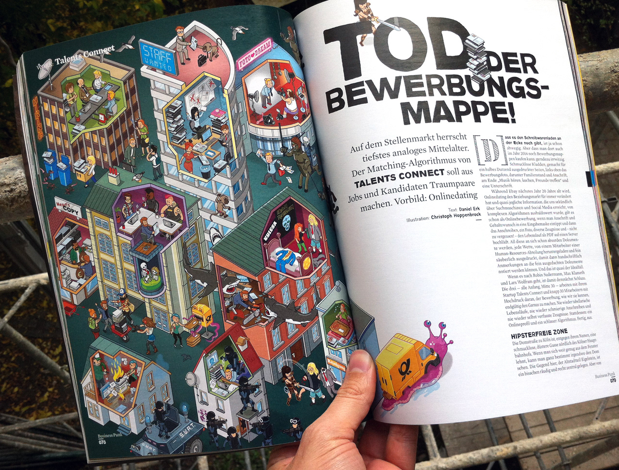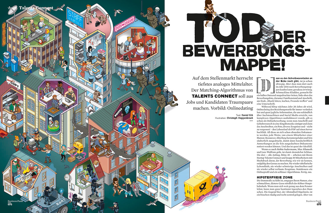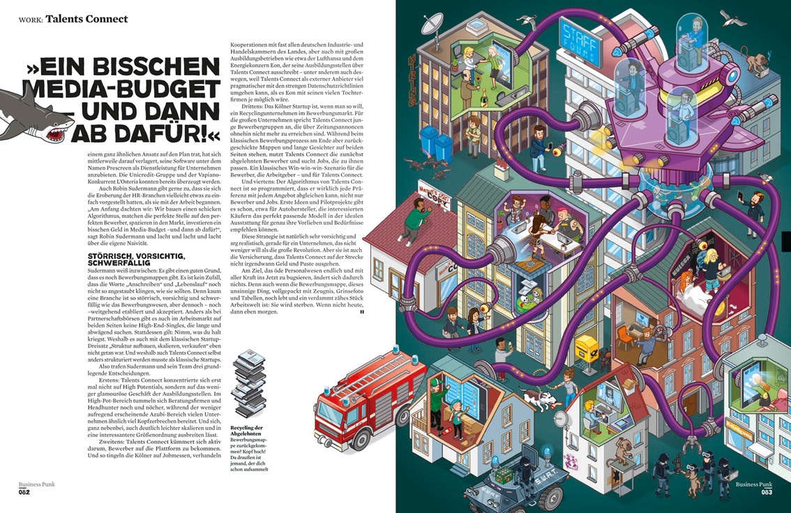 Editorial illustrations for "Business Punk" magazine, about an online recruitment company.