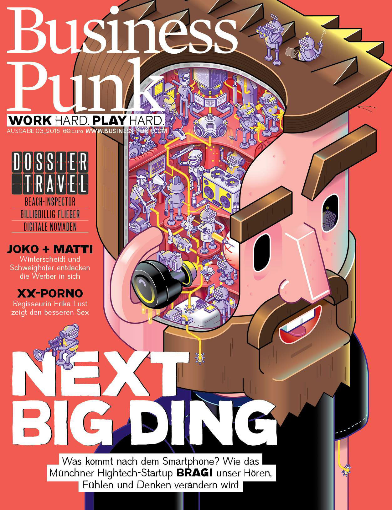 Cover art for Business Punk magazine 03/2016. Inspired by an article about hearables.