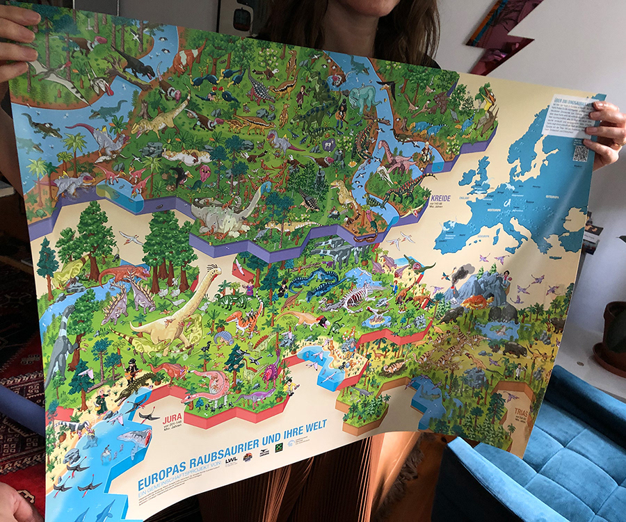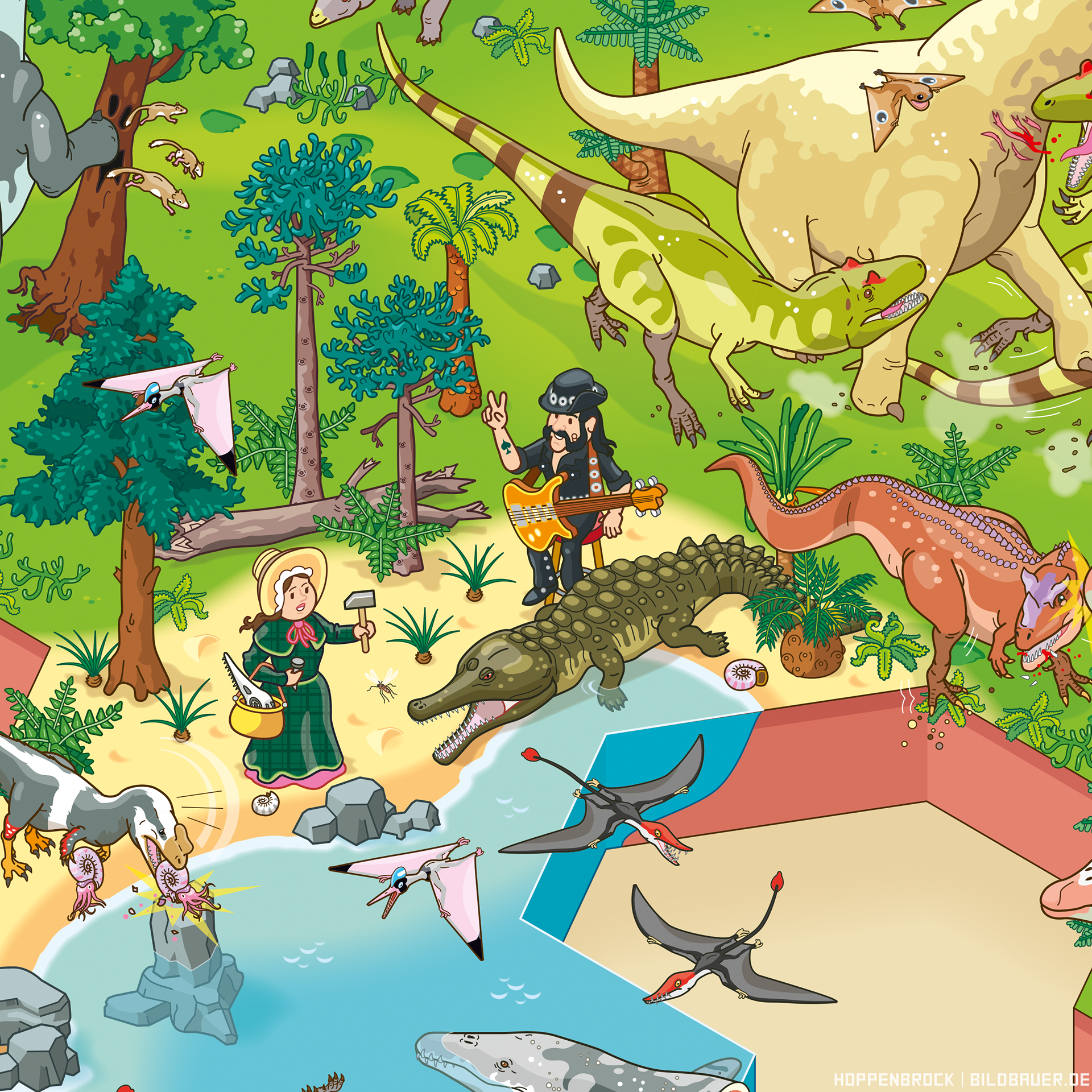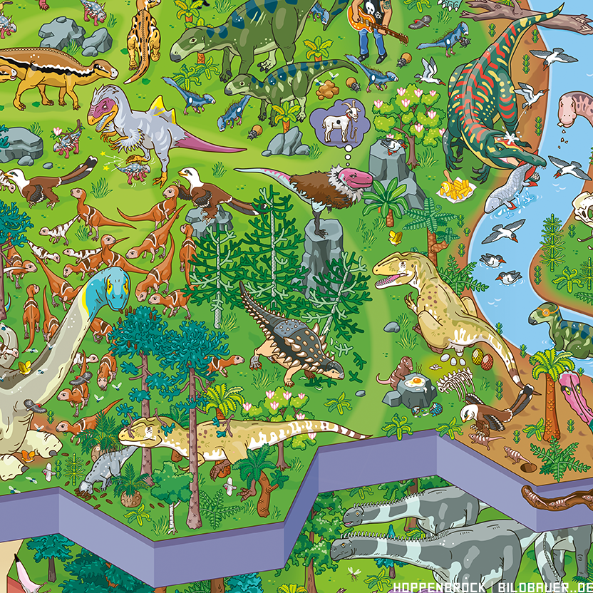 Nach Jahren endlich wieder eine Paläo-Art-Illustration, und die gleich als Riesenwimmelbild für die Ausstellung "The Big 5+: Europas größte Raubsaurier", die zur Zeit im Dinosaurierpark Münchehagen zu sehen ist, und die ab September 2019 eine kleine Europatour zum LWL Naturkundemuseum Münster, zum Dinoparque Lourinha in Portugal, zum Dinosaurisle Museum of Wight in England, und zum Landesmuseum Hannover starten wird. Dutzende Dinos aus Europa aus der Trias-, Jura- und Kreidezeit sind vertreten, dazu jede Menge Pterosaurier, Meeresreptilien und auch ein paar versteckte paläontologisch bedeutsame Primaten gilt es zu finden. Poster ab jetzt lieferbar hier: https://www.dinopark-shop.de/SOFORT-LIEFERBAR/Dino-Ranger/ After years I am now back in paleoart! Dinosaurierpark Münchehagen commissioned me to draw a massive mural about the world of european dinosaurs. It is part of "The Big 5+: The Biggest Theropods From Europe" exhibition that will now travel around Europe, with stops at LWL Naturkundemuseum Münster, Dino Parque Lourinha, Dinosaurisle Museum of Wight and Landesmuseum Hannover. It features dozens of european dinosaur species from the triassic, jurassic and cretaceous time periods. Also, it has pterosaurs, marine reptiles and some hidden paleontologic gems! Special thanks to scientists Nils Knötschke of Dinosaurierpark Münchehagen and Marco Schade at LMU München for making this possible!